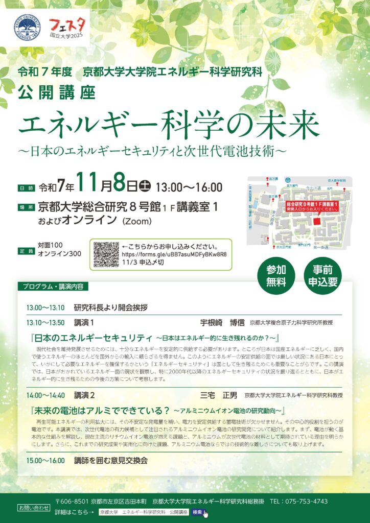 令和7年度 エネルギー科学研究科公開講座 (申込受付中)
