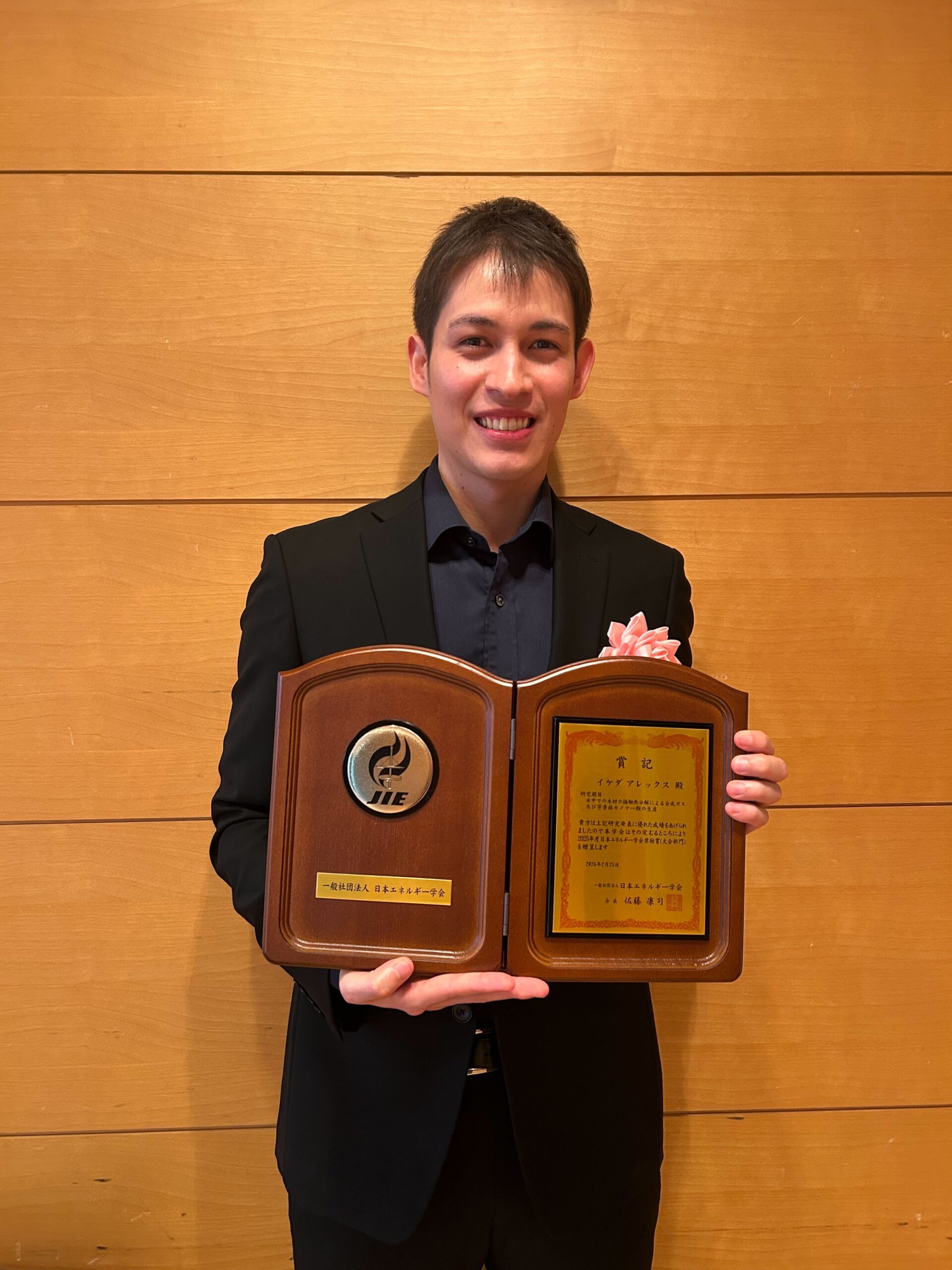 エネルギー社会・環境科学専攻のAlex Ikedaさん(D3)および丸一泰子さん(D1)が2025年度日本エネルギー学会奨励賞をそれぞれ受賞し、2月25日に授与式がありました。Alexさんは第34回日本エネルギー学会年次大会における「水中での木材の接触熱分解による合成ガス及び芳香族モノマー類の生産」、丸一さんは第21回バイオマス科学会議における「重水素標識および TG-MS 分析によるセルロース熱分解におけるレボグルコサン生成経路の検討」の発表が評価されての受賞です。